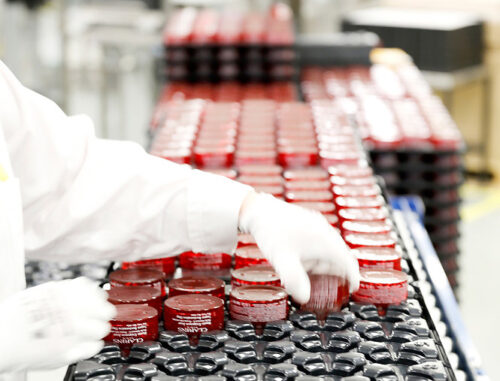 - Pakowanie kosmetyków na linii produkcyjnej.